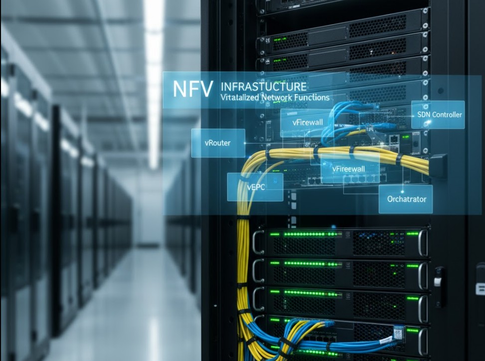 Network Function Virtualization (NFV) replaces traditional hardware appliances with software-based network functions running on virtual infrastructure. NFV is central to 5G, cloud-native telecom networks, and government digital infrastructure initiatives.